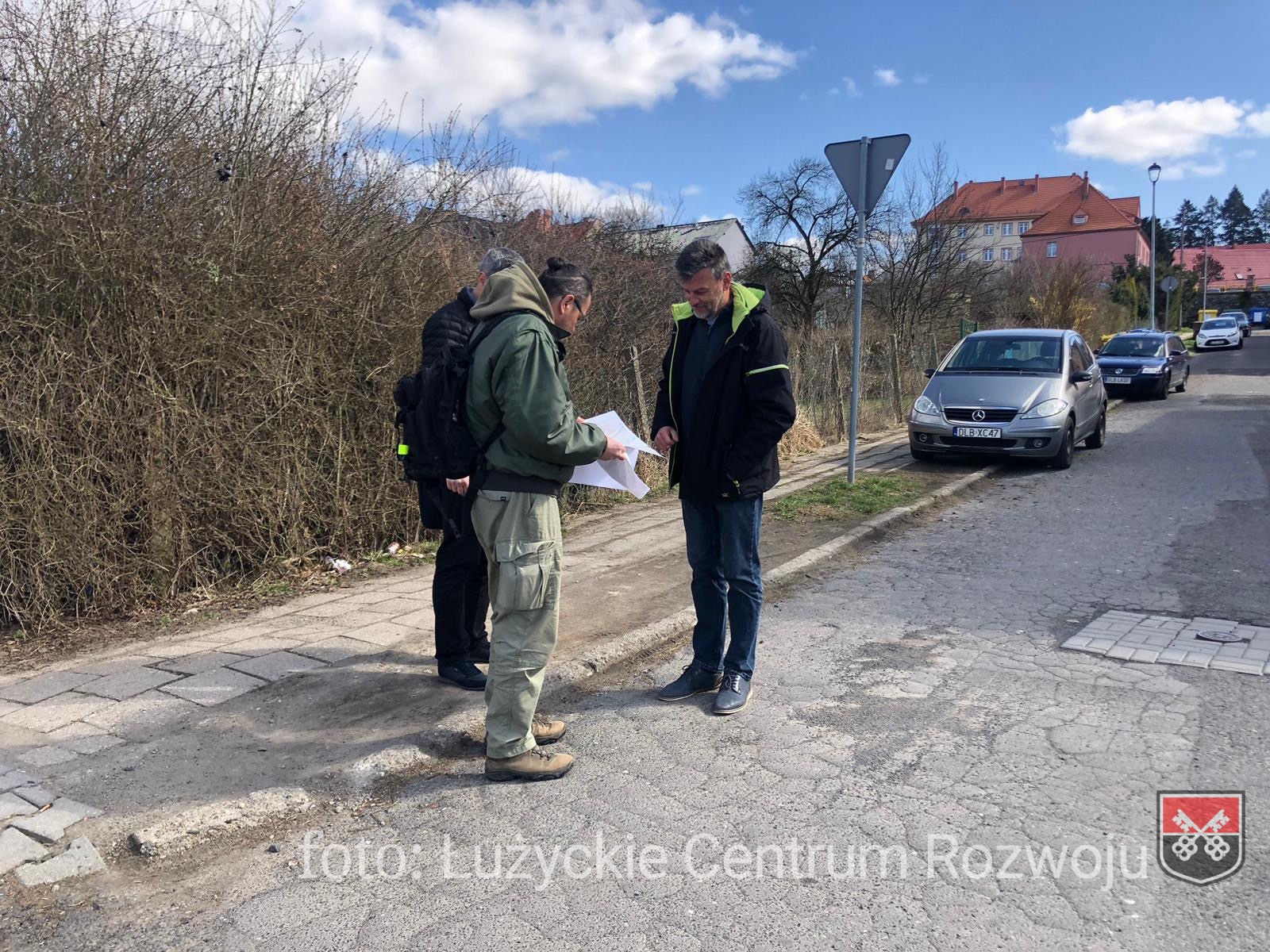 Następnie przeprowadzono wizję terenową przy ul. Łukasiewicza, w której uczestniczyli projektant, Burmistrz oraz przedstawiciele Wydziału Infrastruktury i Modernizacji w Lubaniu.